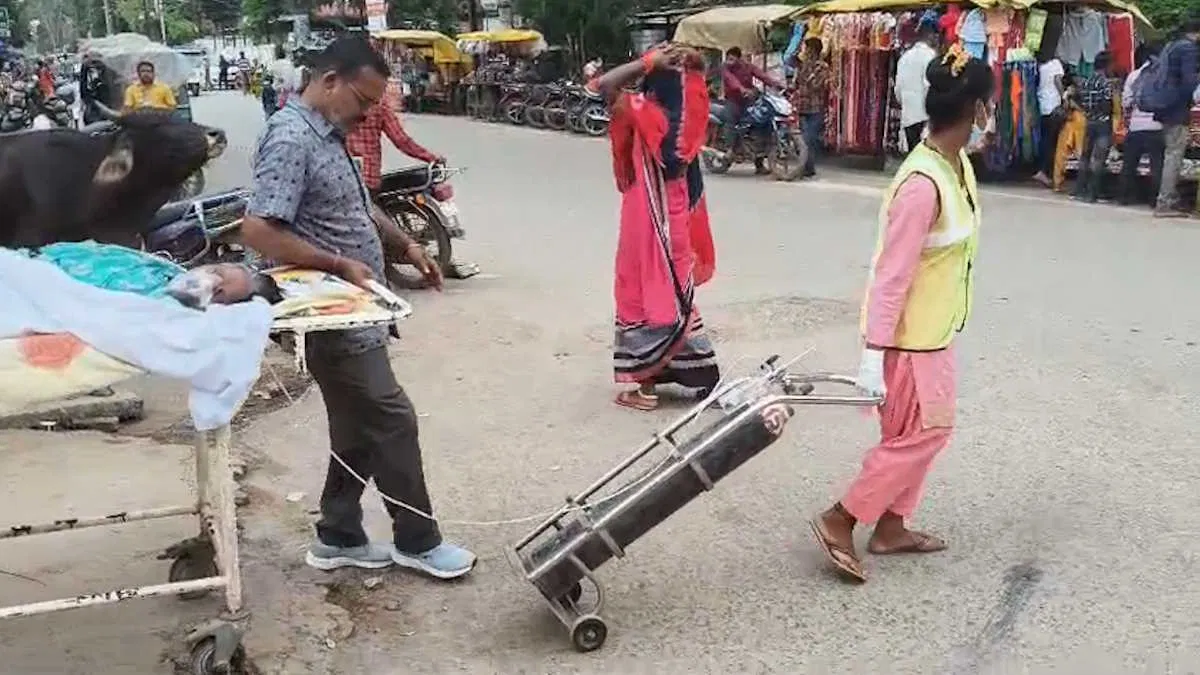 Poor health system: एंबुलेंस न मिलने पर स्ट्रेचर में हाईवे पार कर ले जानी पड़ी मरीज